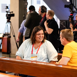 Zur Zukunft der Erzdiözese Wien wurden von 50 jungen Mitarbeiterinnen und Mitarbeitern fünf Thesen formuliert, die intensiv diskutiert wurden. Mit dem Online-Abstimmungstool Mentimeter stimmten die Anwesenden am Smartphone über die Thesen ab. Wir waren mit der Kamera dabei!
